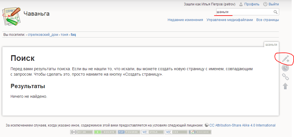 Чтобы создать свою статью, нужно написать в окне поиска название своей статьи.