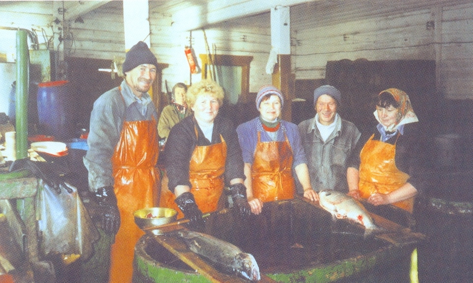 – Сам я чапомский, ходил в море матросом-рыбообработчиком на судах…, а с 1979 подался в Чаваньгу. Здесь после монтажа пресерной линии пригодился мой опыт работы на плавбазе – стали «катать» банки из беломорской селедки, – рассказывает Александр Логинов.<…> Когда с тоней доставляют на факторию очередной улов, за дело берется весь небольшой коллектив колхозных рыбообработчиков. И дело у них спорится